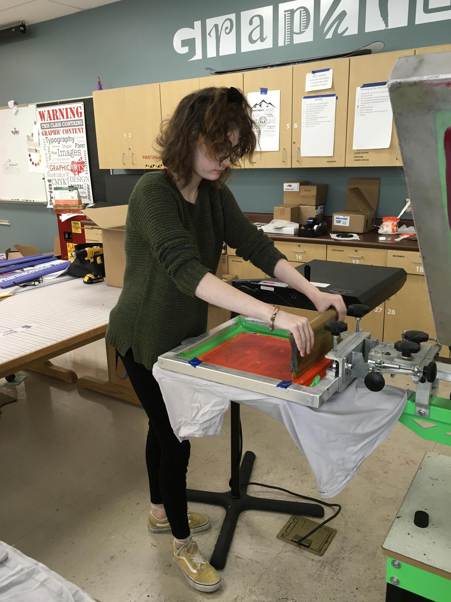 . This class is open to everyone. We offer a sequence of courses to help you learn to screen print. You can store screens and materials at the Art.